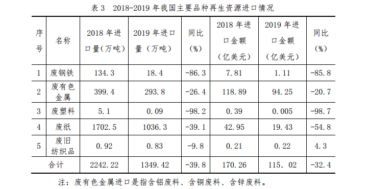2019 年,在綠色發(fā)展理念引領(lǐng)下,國(guó)家對(duì)再生資源重視程度明顯提高,再生資源領(lǐng)域政策支持和制度保障力度加大,多項(xiàng)重大利好政策相繼出臺(tái),持續(xù)為行業(yè)注入增長(zhǎng)動(dòng)力,推動(dòng)再生資源行業(yè)向集聚化、集約化方向發(fā)展。