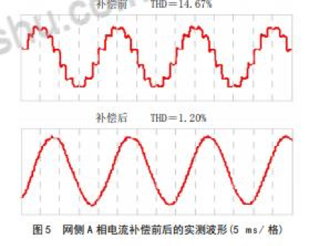下表給出了中頻電爐部分實測數(shù)據(jù),表中數(shù)據(jù)很清楚地表 明,采用該補償方法能夠很好抑制網(wǎng)側(cè)電流的諧波。